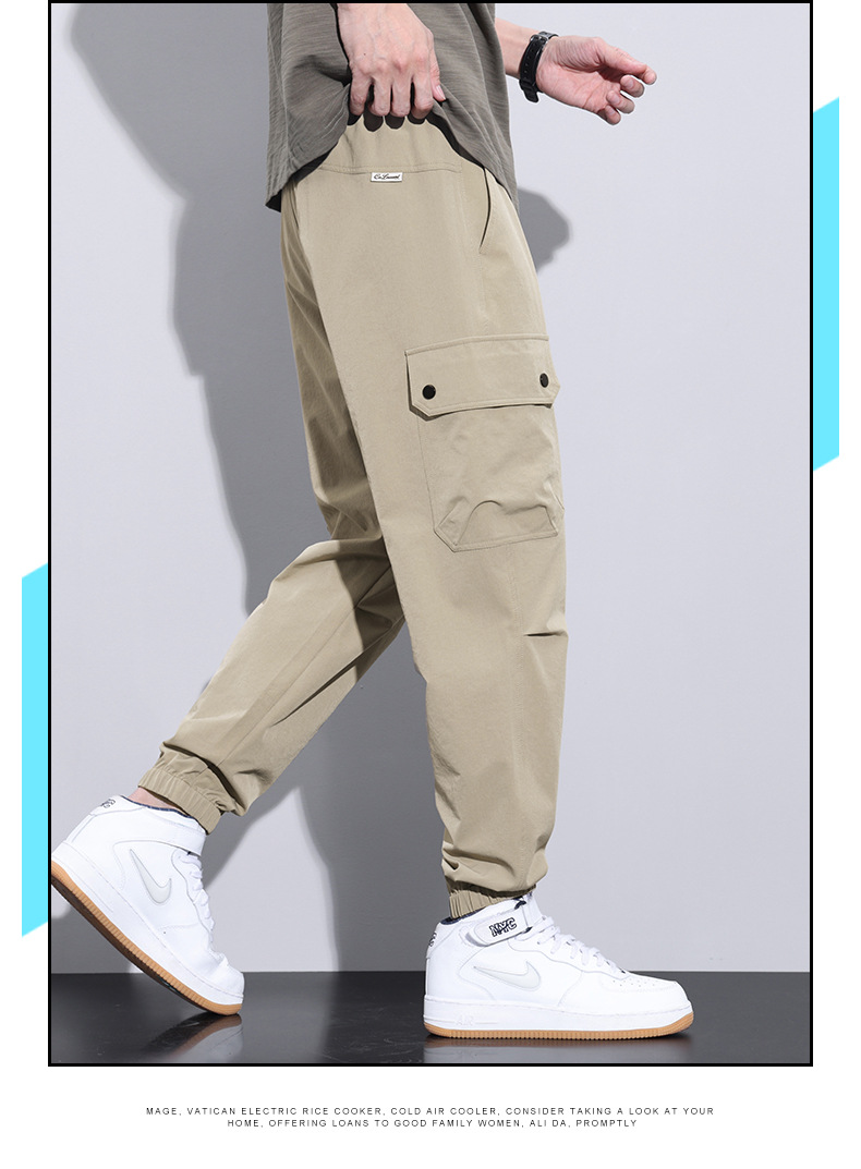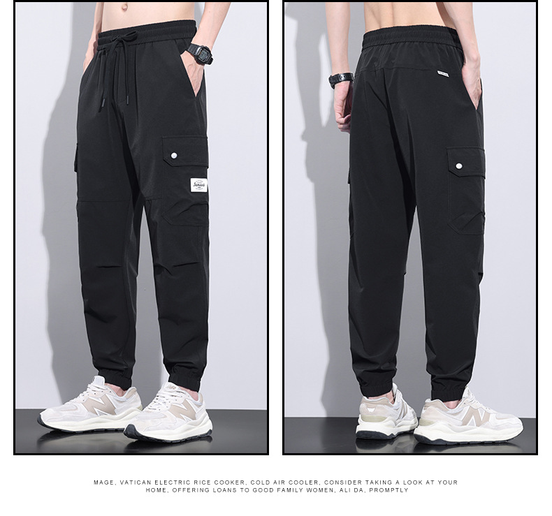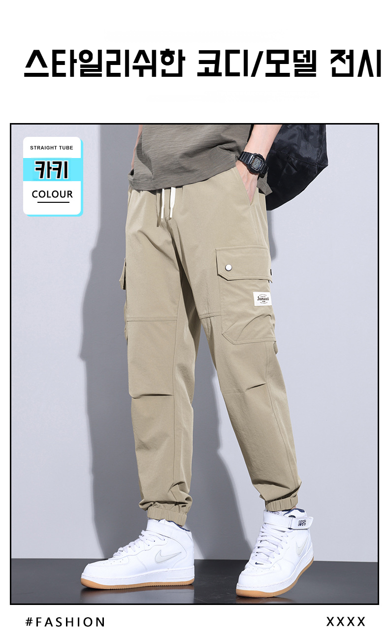 남성 와이드 배기 아이스 통기성 카고 팬츠 봄 조거 속건 트레이닝 캐주얼 팬츠 멀티 포켓 아메리칸 와이드 빅 사이즈 팬츠